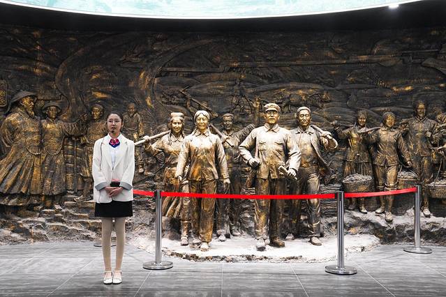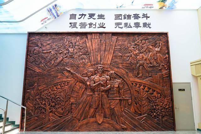 走进纪念馆,一边聆听着柯柯牙地区从昔日“漫卷狂风蚀春色,迷蒙黄沙掩碧空”的荒原大漠到今天“风拂杨柳千顷绿,水润桃杏万园红”的苍茫林海的变化,一边凝视着一幅幅弥足珍贵的照片、一篇篇生动详实的文字叙述,完全被眼前的情景震撼,感慨于柯柯牙的“绿色长城”。