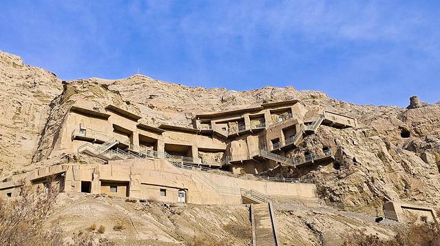 克孜尔千佛洞又称克孜尔石窟,位于 新疆 拜城 县克孜尔镇东南7千米明屋塔格山的悬崖上,南面是木扎特河河谷。