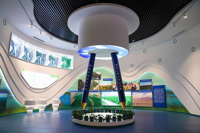 柯柯牙纪念馆分为序厅、荒漠之殇、创业之艰、奋进之旅、胜利之果、未来之路六个篇章,而且纪念馆融合了声光电等现代科技,通过实物展示、虚拟仿真、互动体验、光影再现、图文并茂等方式,再现了几代 阿克苏 人在艰苦的柯柯牙环境中创造生态奇迹的历史画面、展示了 阿克苏 地区在植树造林、生态修复、公园城市建设等方面取得的成效。