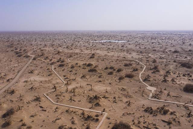 “睡胡杨谷”充满远古的沧桑,连片的胡杨如千军万马奔腾而来,景色壮观,气壮山河,吸引了无数人前来探秘、观赏,进入“睡胡杨谷”,眼前的景观令人震撼,神奇的沙漠,坚强的胡杨给人带来不一样的视界感受。