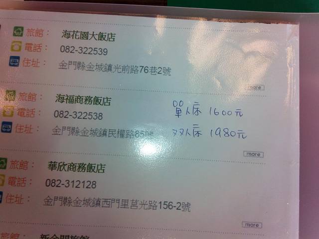 到达金门下得船来,办理好入境手续,租车店老板推荐我们住福海酒店