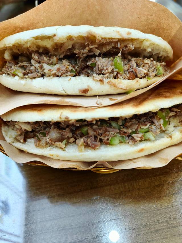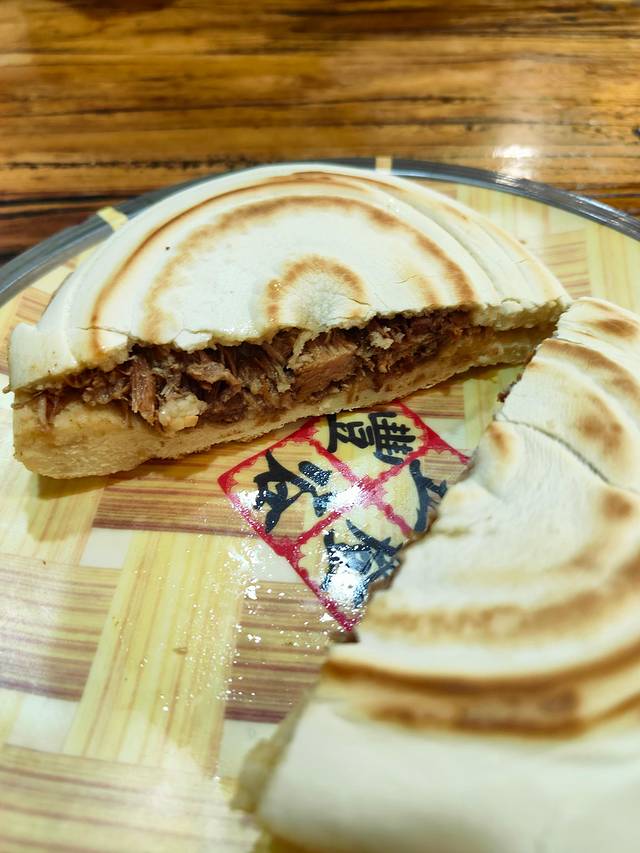 讲解员推荐的肉夹馍...说是带自己小孩都吃这家,算了吧,不好吃