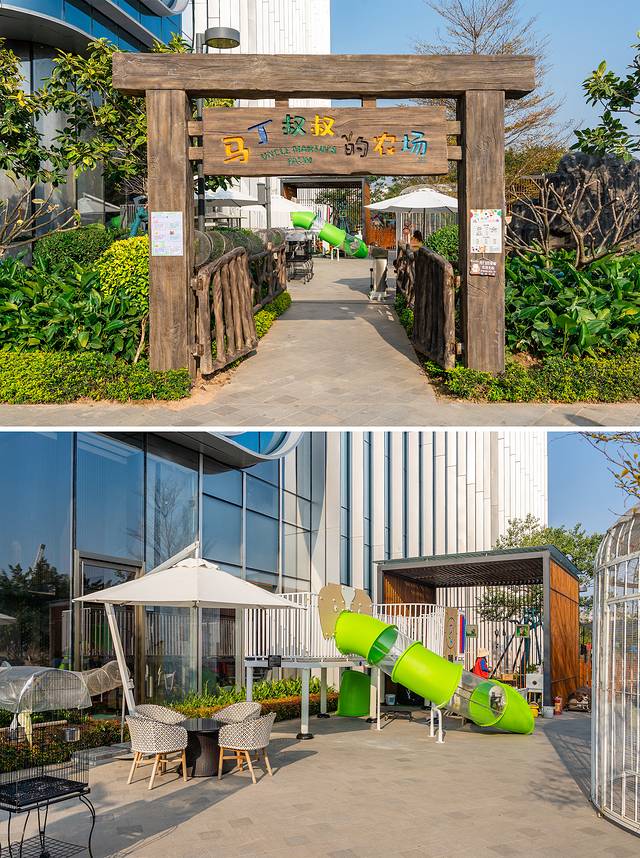 在酒店户外,特地为亲子家庭准备了能与小动物们零距离接触的“马丁叔叔的农场”。农场分为萌宠乐园区、草坪孔雀区、宠物客栈区,汇集了多种可爱的小动物,如羊驼、松鼠、小香猪、柯尔鸭等多种不同种类的小动物。孩子们可以亲自喂养小动物,科普与娱乐相结合,带给孩子们一个难忘的假期。
