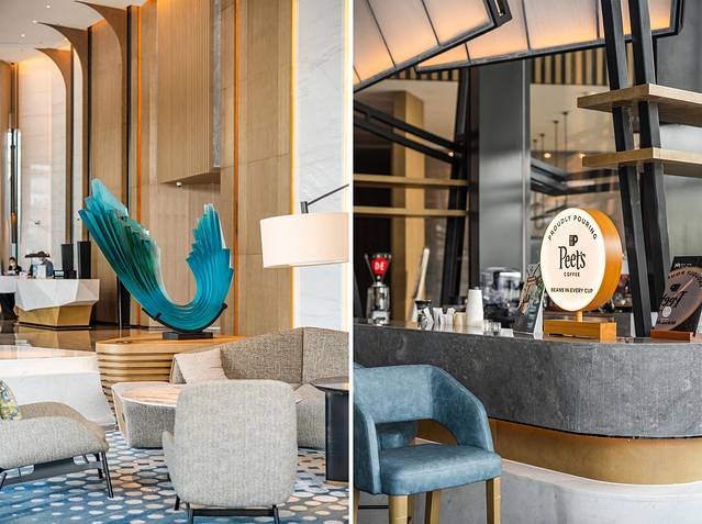 酒店与皮爷咖啡合作,于每天特定时间段在酒店一楼大堂吧为宾客供应Peet's Coffee。每一杯Peet's Coffee都会喝到咖啡原本应有的品质和味道,皮爷咖啡的宗旨是坚守初心,专注做好每一杯咖啡。其中「桂花酒酿拿铁」在咖啡醇香之中注入了桂花的清香,让咖啡味道更加醇厚,口感层次更丰富,值得一试。