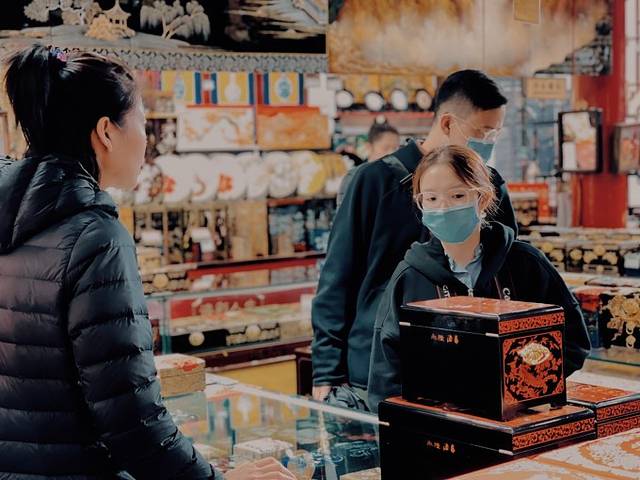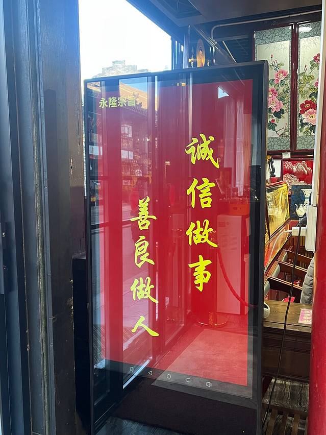 俗话说“进了平遥城,银子元宝绊倒人”,来到晋商故里,看过了地下金库,我们也来沾沾这儿的“财大气粗”把,一家有温度的传统银饰店——子佩集,第一次在路上被里面霸气侧漏的龙给吸引了,里面装饰的很精美,有女孩子的梳妆台,小孩抓周,一桌子银碗宴席,店员介绍了他家的雕梁画栋,墙上挂着是推光漆器,前面有师傅现场制作银饰,很好的一家店,我们顺便给妈妈买了一副手镯~