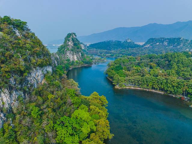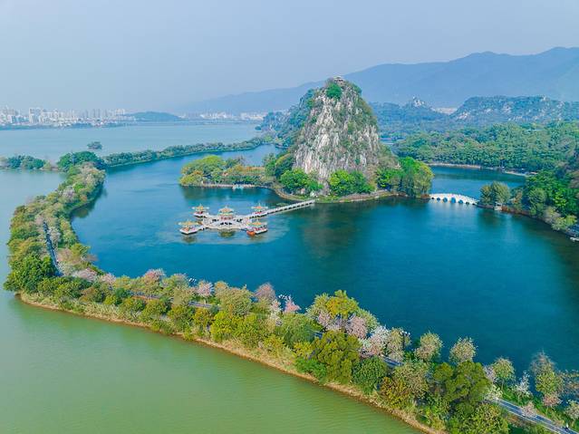客栈对面的肇庆星湖国家湿地公园是来肇庆绝不可错过的风景名胜。它是中国亚热带极具典型性和代表性的岩溶湖泊湿地。叶帅就曾在这里留下“借得西湖水一圜,更移阳朔七堆山。堤边添上丝丝柳,画幅长留天地间。”的诗句。