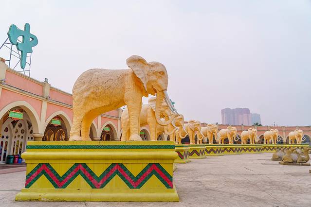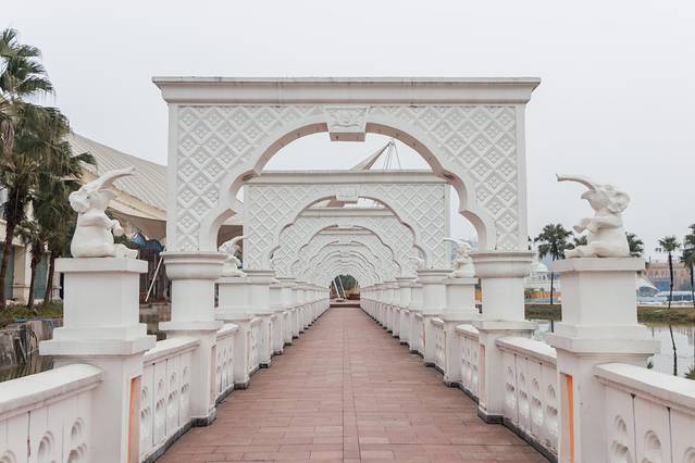 园区的建筑大多都是中东风格,热带园林的景观让人有种置身国外度假的感觉。