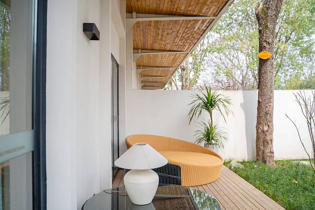 推开窗就是自己的小院子,院景打造的很精致,白色的围墙不会让人觉得压抑,同时可以无拘无束的享受假期时光。
