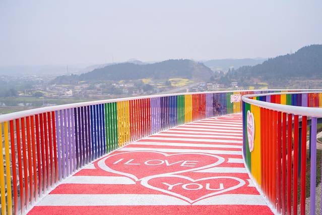 山顶还有个彩虹云梯,也叫莫比乌斯爱之环。各种彩色的栏杆和涂鸦,拍照真的是太好看了。