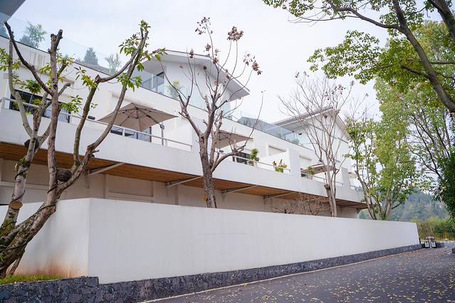 这家精品民宿同样给我了很大的惊喜,白色的建筑外观简单大气,度假区内环境优美,处处充满鸟语花香。