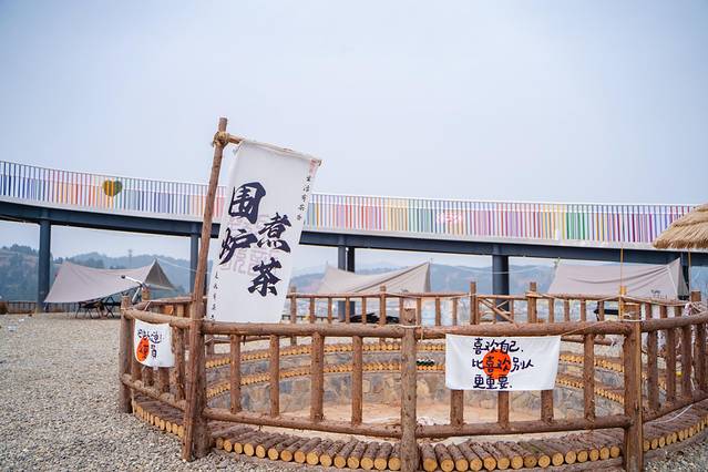 除了烧烤,还能围炉煮茶,过来时遇到一群搞公司团建的游客,他们唱着歌,烤着串,氛围感十足。