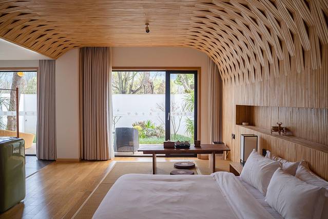 东方客馆的建筑依山而建,周围植被丰富,负氧离子含量高,在这里短住一两晚,有种避世的悠闲自在。