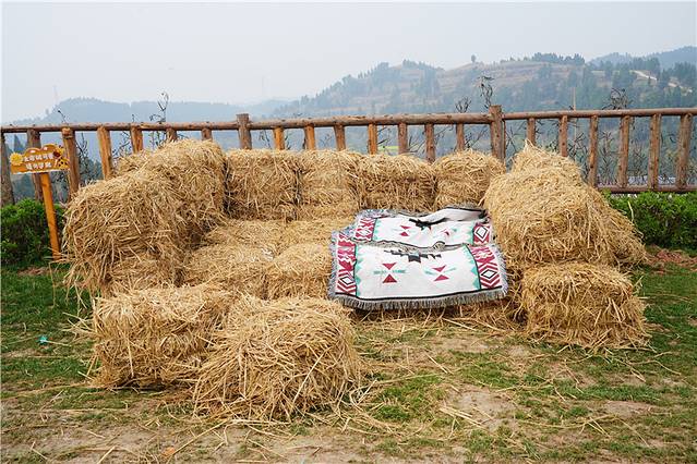 在露营基地结合了当下热门、潮流的打卡网红元素,如稻草堆。