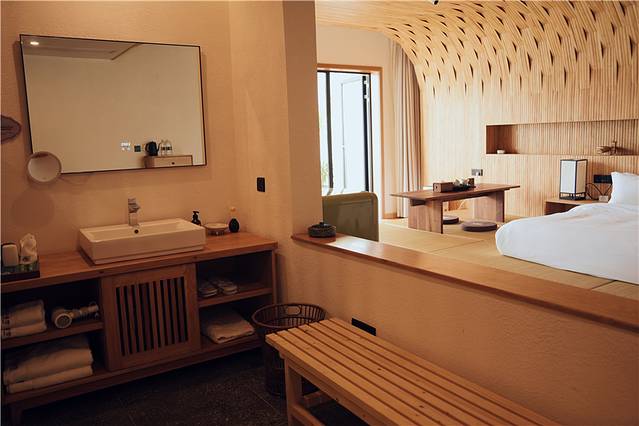 这次我们入住的是 大英 东方客馆,是一家由中式现代风格和古典家具相给合的酒店,坐落于 大英 县东方生态旅游度假村内,依山傍水,环境清幽。而且每个房间还配有私汤池,不像其他酒店,要去公共游泳池跟大家打挤。