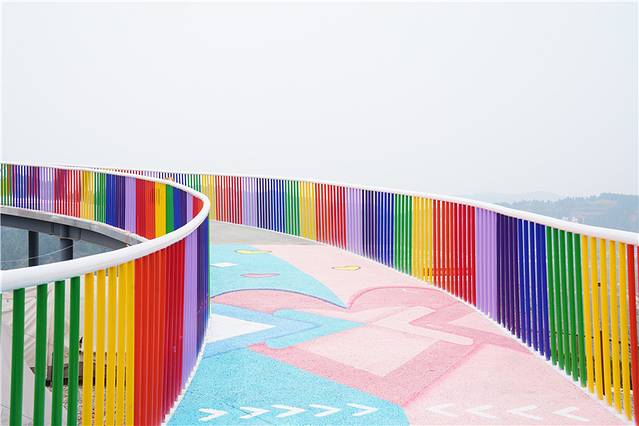山顶尤为抢眼的是彩虹云梯,颜色鲜艳,在阳光的照射尤为光彩耀眼。是我最喜欢的打卡处之一。