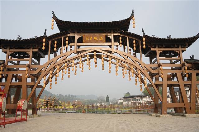 特别是宋井 桃源 以复现宋代场景,构建的“宋驿”“宋村”“宋节”三大组团场景尤为出彩。“宋驿”以国潮元素展示桃、盐文化,构建青年文化聚落驿站,通过村民参与盐卤温泉民宿经营、文化体验经营,满足游客吃住行游购娱等丰富活动。