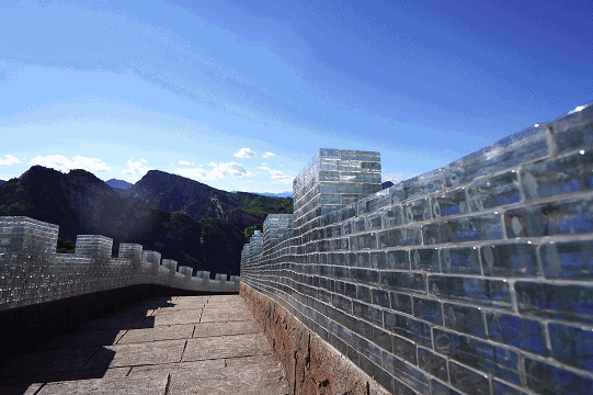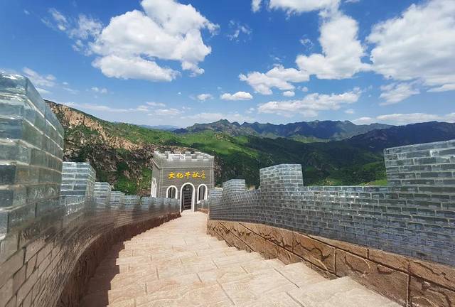 长城世界奇迹之一,水晶长城是中华传统文化的创新与传承;阳光照耀下,晶莹透剔,一座水晶长龙蜿蜒盘旋、气势磅礴。
