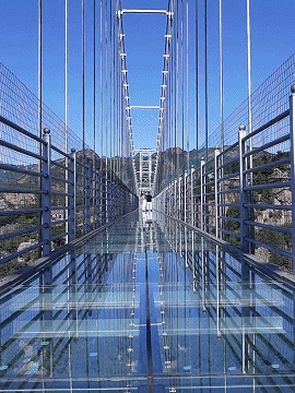 玻璃天桥架在俩山峡谷之间,鼓足勇气漫步在千米高空玻璃天桥,如若仙境,让人心惊胆战;赞叹大自然的神奇,更佩服中国现代建筑,惊险与刺激带来前所未有的体验!