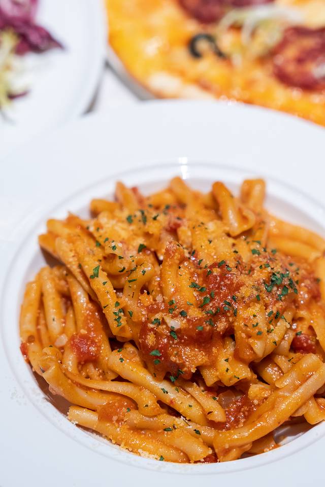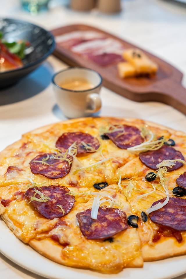 主食(三选二):炭烤和牛上脑牛排、香煎海鲈鱼、辣味香肠披萨