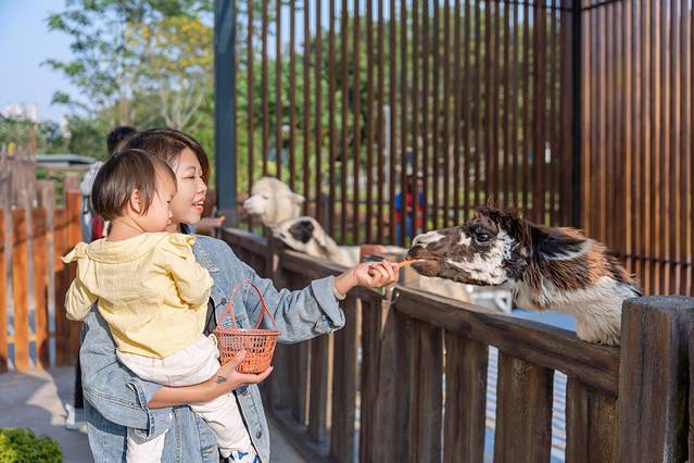 农场分为萌宠乐园区、草坪孔雀区、宠物客栈区,汇集了如羊驼、孔雀、松鼠、小香猪、柯尔鸭、兔子、孔雀等近30种不同种类的小动物。在这里,宝宝可以喂养动物,也能了解到动物与大自然的更多知识。