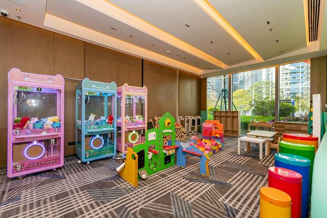 同时还设有一百多平方的室内儿童俱乐部,里面有海洋球池、娃娃机、益智玩具等儿童设施。