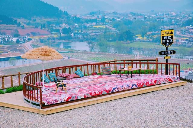 来到乐享土门园区,可以走进村史馆,细致的了解村子里种植中医药的故事,还可以看到很多奇特的中医药草,增长自身见闻。站台山坡之上,可以眺望整个村子。在山坡之上,有一块相对平坦的土地,如今已经被打造了中医药的观赏休闲区域。在这里可以打卡各种有趣的标语牌,也可以在这里露营,看日落星辰。三五好友围炉而坐,晒着暖意洋溢的春阳,观景、品茶,尤为轻松自在。