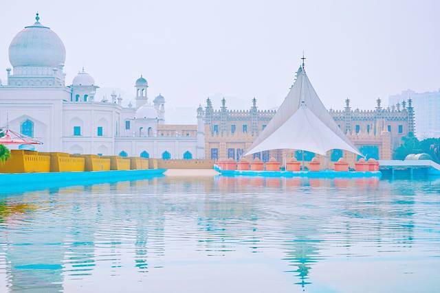 走进大英中国死海,首先映入眼帘的是中东风格的建筑群和充满热带风情的园林景观,漫步其中恍若置身异域。如果你喜欢拍照,一定不要错过户外的建筑群,随手一拍都是异域风情的大片,因为本地的情侣偏爱来此拍摄婚纱照,以实现出游外国的愿望。