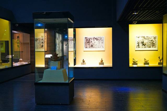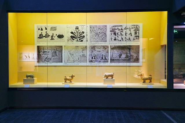 一楼的后半部分为“大英卓筒井展览室”,二楼为汉陶博物馆展品陈列室,展出的文物大多出土于郪江流域两岸。