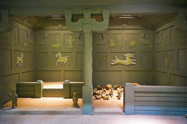 穿过大英历史文化长廊,来到以汉风民俗、轻歌曼舞、车马出行、青铜文明、古墓复原、陶艺制作六个部分为中心陈列展品的汉陶展厅。通过一件件文物,去深入了解郪国古代文明。