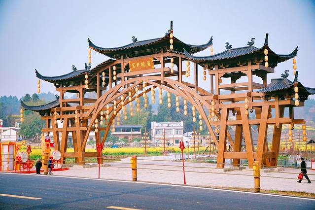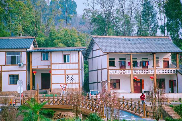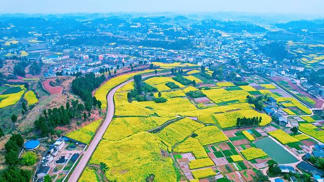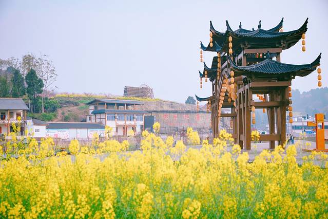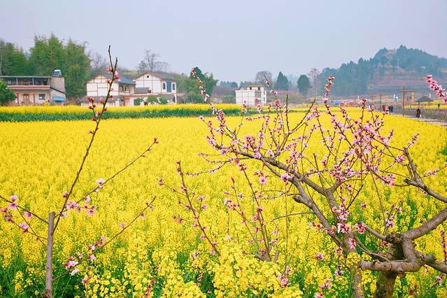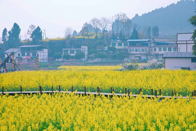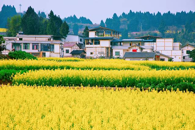 春天的田野都会被一簇一簇的油菜花装扮成金装,一阵清风徐来,大地上便掀起了片片的涟漪,散发出阵阵清香,招风引蝶。一排排纯白色的小楼房,四周环绕着金灿灿的油菜花海,虽不及 婺源 那般雅致秀美,却有着川东独特的乡村之美。