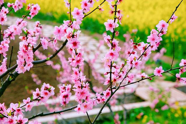 阳春 三月,云淡风轻,只为花忙。来宋井 桃源 ,看漫山遍野的油菜花,与那粉红的桃花。金黄的油菜花海与粉色的桃花海,粉饰了宋井 桃源 ,为之增添了一份雅致。倘若你喜欢古风,不妨穿一袭汉服,漫步花海之中,构成了一幅浑然天成的春景画卷。