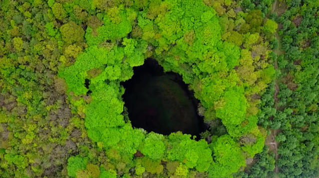 国际著名洞穴探险家让·波塔西曾赞誉天悬天坑为“世界上最美的心形天坑”,尤其从空中的无人机视角鸟瞰,仿佛一个心形镶嵌在山谷中,极富美感。近乎垂直的坑壁望之深不见底,坑内还有珍稀动物红白鼯鼠,是从各个意义上堪称完美的天坑地貌,天坑四周有木质环型步道,可以俯瞰天坑内部景色。