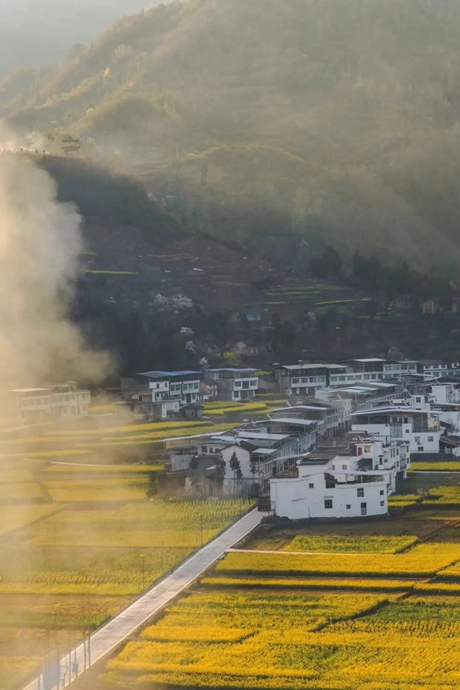 三月春风拂面,盎然生机将绿意洒在巴山锦绣的山河遍地。平野菜花黄,春色醉巴山,数片千亩油菜花开成海,金黄璀璨,无限春光。