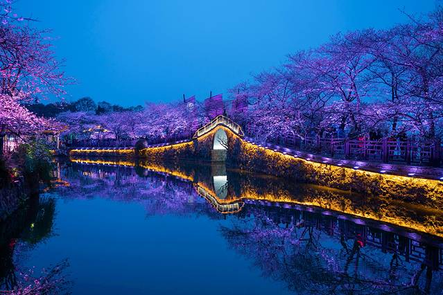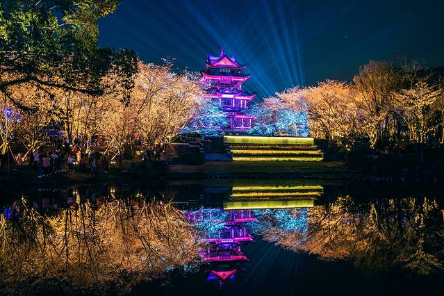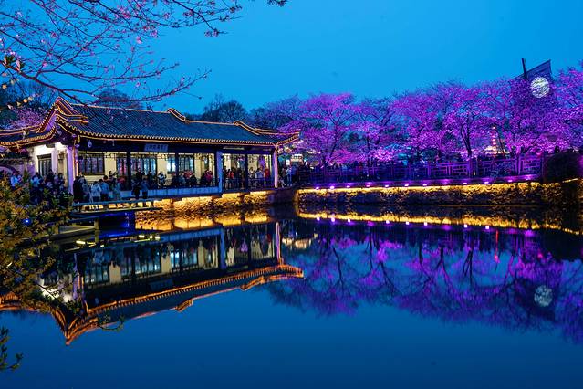 灼灼樱花迷人眼,在鼋头渚赏夜樱成为春日夜晚最独特的记忆。