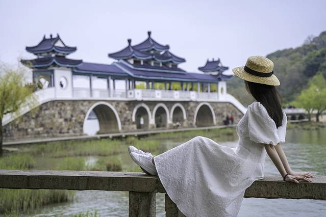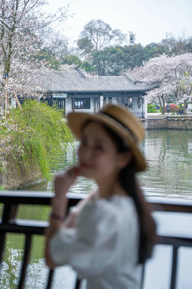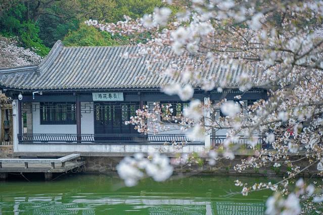 长春桥,建于1936年,湖堤两边种的是日本的“染井吉野”,在众多的樱花之中,这种樱花是公认最美的那种。在这里,可以欣赏到江南园林、樱花纷飞以及湖光山色的完美结合。
