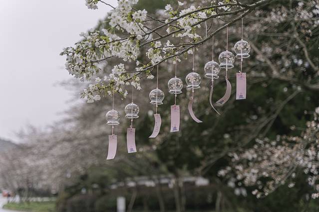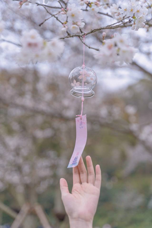 一阵阵微风吹过,一片片的花瓣随风飘落而下,伴着悦耳的风铃声,无法用语言形容的美丽场景。