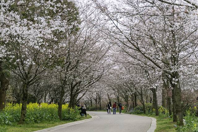 在这里,原本高耸的樱花变得触手可及,也有着非常多不错的拍照取景地。