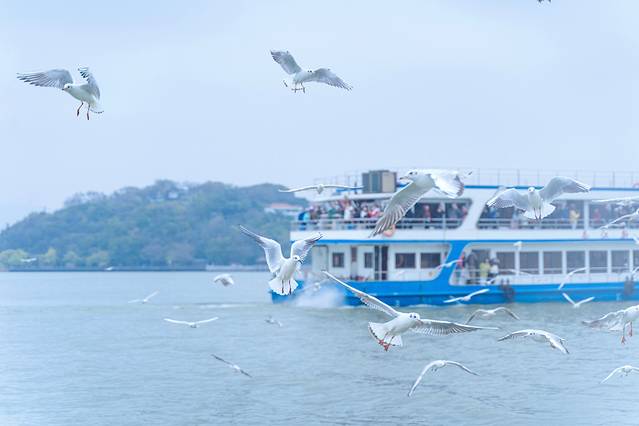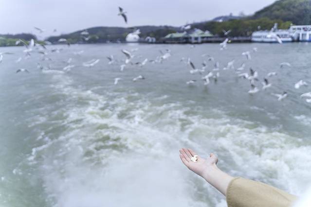 来到鼋头渚,太湖的风光也同样值得一赏,除了太湖绝佳处的鼋头,还可以坐上游船前往太湖仙岛。当游船的汽笛声响起,湖面上的沙鸥瞬间就飞了过来,围绕着游船不断地盘旋,等待着游船上游人的喂食。
