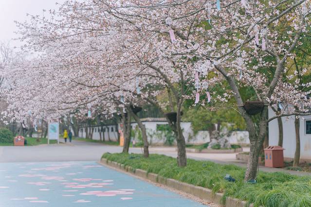 一阵春风吹过,片片的樱花落入旁边的湖泊之中,伴着微波形成了阵阵的涟漪,这便是“长春花漪”。