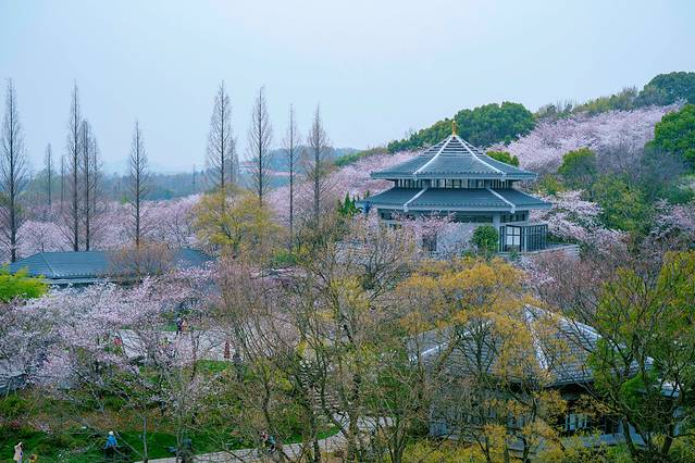 来到鼋头渚,最不能错过的赏樱点之一便是樱花谷,三万余株的樱花迎着和煦的春风盛情绽放。樱花谷内,有着许多和樱花相得益彰的建筑、造景,唐宋风格的古建筑、碧波荡漾的池塘、原木日式风的甜品店,漫步其中,处处都是美景,处处都值得打卡留念。