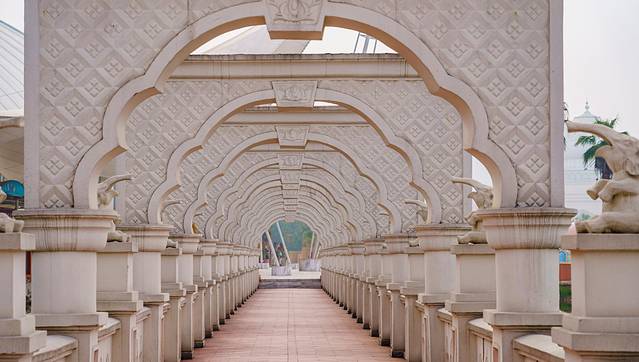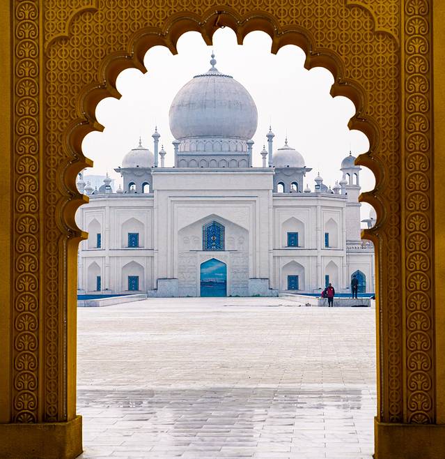 特别是这个角度的照片,看上去与泰姬陵经典打卡照片极其相似,过来时人站在拱门前面一点拍摄取景,出来的效果会很好看。