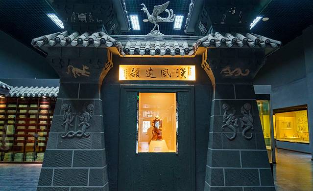【大英汉陶博物馆】地处郪江流域,展出的文物也大多出土于郪江两岸,目前共有展区六处、文物905件,“西王母座神灯”是其中的镇馆之宝。但我更感兴趣的其实是“古墓复原展区”,这里通过等比例复制了东汉崖墓,十分清晰地展示了二千多年前崖墓的形制,清晰体现了郪国人“面水而居,依山而葬”的丧葬习俗,而墓室的简陋与豪华也是该时期等级制度的真实体现,也算是另一种方式去了解那个时代的文明。