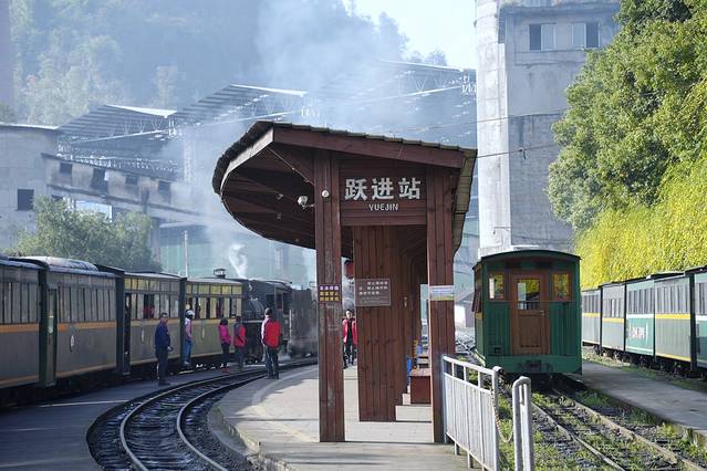 火车停靠到站,烟囱的排气管仍然冒着灰白的热气,感觉那个虽然没有触碰过,但似曾相识的时代离我们并不遥远。站台的名字也让人浮想联翩,“跃进站”一股人民公社的味道让人们相视一笑,仿佛下一秒就要开启大锅饭模式了。