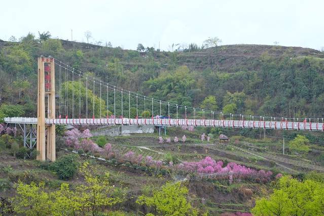 在犍为 ,观赏鲜花美景来花果溪就好啦~花果溪四周的鲜花也跟着时节的星移相继开放,一年四季都在蜕变着不同的“花样”。“百亩庭中半是苔,桃花净尽菜花开。”每年的三四月份正是桃花的花期,我们正当其时。欣赏着灼灼桃花开遍山野,心中的压力随着花蕊散发出的芬芳也正在悄然逝去。