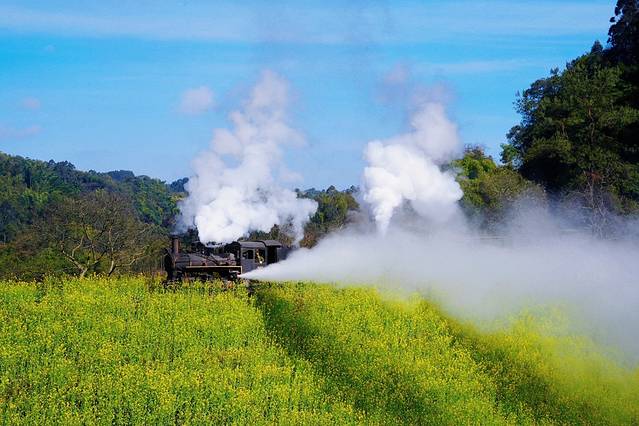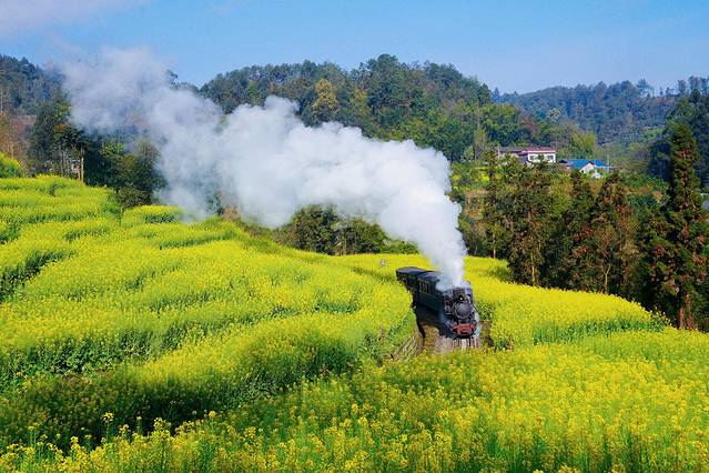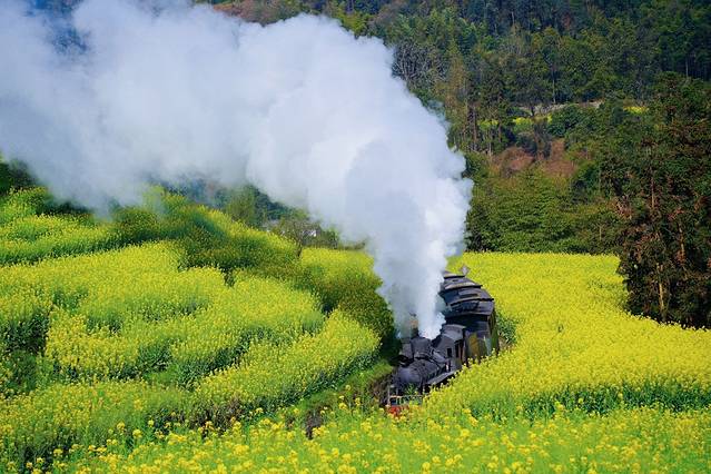 在犍为 ,还有一个集见学和游玩为一体的地方,那就是嘉阳桫椤湖景区,最出名的当属这里的嘉阳小火车。当然,除此之外,这里主要有两大观赏地区,也就是园区内的两大“活化石”,即植物“活化石”桫椤树和工业革命的“活化石”蒸汽小火车。春季是油菜花开放的季节,也是嘉阳小火车最为火爆的季节,人们争先恐后只为体验穿越时空的反差感。在油菜花花海里乘坐十八世纪的蒸汽小火车,在一个又一个的转角与金黄的花朵会面,这一眼仿佛隔了好几百年~我此行主要的目的也是为它而来。
