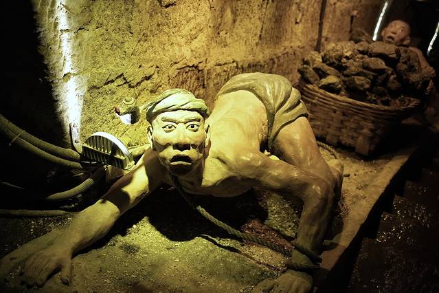 矿道狭窄而潮湿,经过修整但仍灯光昏暗,不知道当年在这儿工作的老矿工们又是经受的怎样的待遇。这样的条件对于有小孩的家庭来说无疑是一个很好的教育机会吧。