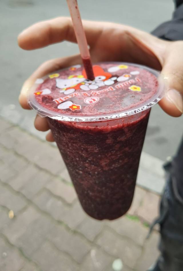 路边的小店,随手买了果汁冰(草莓+桑椹),中杯8元,意外的好喝