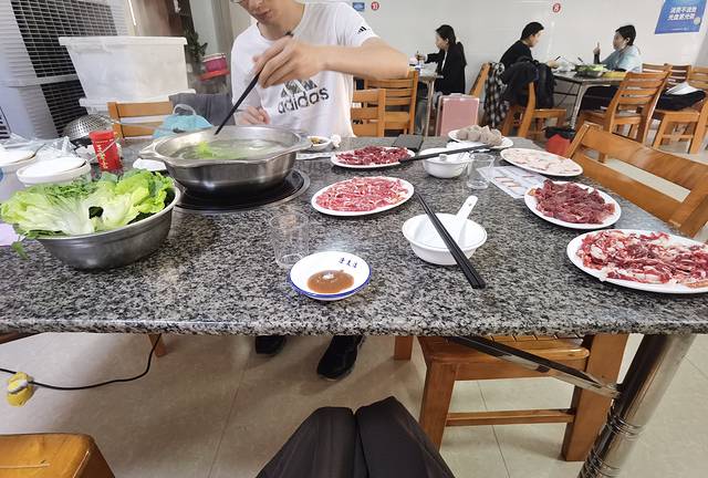 两个人点了中汤锅,包括了一盘蔬菜和粿条