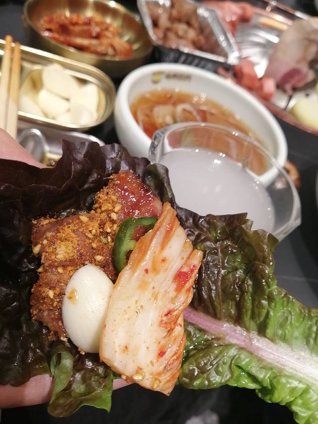但是靠近网红墙就能看到三五成群的人流了。大楼不是很高,中朝文字的各种牌匾映入眼帘,感觉好像到了另外的国度,别有感觉。也想买杯咖啡,拍一张抖音上的唯美图片,但实在喝不下了,就借用了栏杆上随处可见的咖啡杯,结果被小朋友一顿嫌弃,让我赶紧放下,扔掉,太脏了!