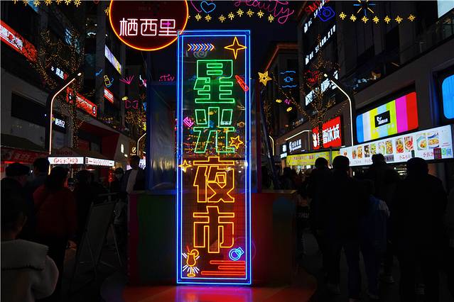 晚上就得去仁寿栖西里,它属于仁寿的星光夜市。仁寿栖西里紧邻天府大道 和龙 滩大道,是去年开业的,以美食、娱乐、潮玩、网红集聚地为导向,是仁寿的太古里、象南里、星光夜市。